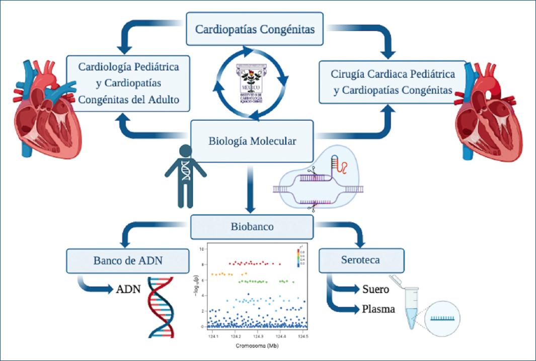 Los departamentos de biología molecular, cardiología pediátrica y cirugía cardiaca pediátrica y cardiopatías congénitas del Instituto Nacional de Cardiología Ignacio Chávez se han entrelazado creando diversos proyectos de investigación traslacional en cardiopatías congénitas. Destacamos que se trata de las malformaciones más frecuentes, cuya prevalencia es de 6 a 8 por 1000 recién nacidos vivos, naciendo en nuestro país entre 12,000 y 16,000 niños con alguna cardiopatía congénita cada año, y es la segunda causa de muerte en niños menores de 1 año y en niños menores de 4 años6-8.