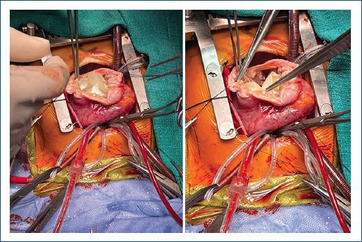 Se procedió a realizar escisión de tejido fibrótico intramiocárdico, localizando los bordes del DVI, y se realizó reparación con exclusión del divertículo con parche de pericardio heterólogo. Se cerró la ventriculotomía por planos, se despinzó y se retornó a ritmo sinusal, sin complicaciones (Fig. 2).