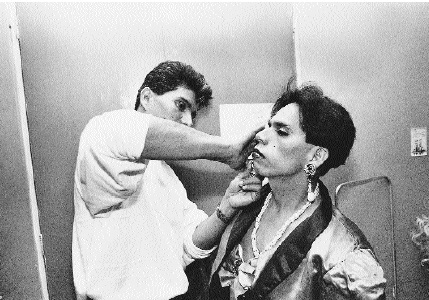 Hubo un tiempo en que hacía show de trasvesti pero no me gusta, me desespero mucho estar vestido de mujer porque tiene uno que usar muchas cosas... Como tengo mucho pero mucho vello tengo que ponerme como siete pares de medias para cubrirme los vellos, luego los bustos postizos, el pene se lo tiene uno que meter para atrás, el maquillaje, la peluca... claro que me desespera estar sudando mucho. Después del show uno se queda un rato vestido así para tomar una cerveza con alguien que te invita, para ganar tantito dinero... pero no me gusta para nada. Yo pienso, respetando la decisión de cada quién, pero no necesito vestirme de mujer para llamar la atención ni agradarle a la gente, a uno lo deben acectar como eres.