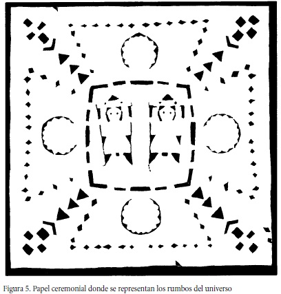 4 En la figura 2 se advierte la representación de las orientaciones cósmicas en el papel ceremonial.