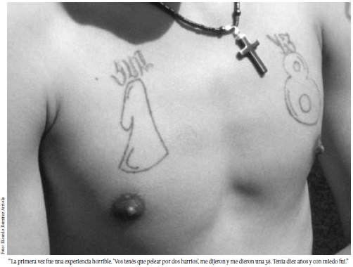 El segundo aspecto está directamente vinculado al anterior y se refiere a la constitución de la violencia y criminalidad en un nuevo eslabón de una cadena de desventajas. En un círculo perverso de acumulación de estas últimas, la violencia juvenil que, como vimos en el apartado anterior emerge de la exclusión, añade nuevos elementos al proceso de acumulación de desventajas que experimentan estas comunidades. Pobres contra pobres; los vecinos agobiados por innumerables carencias deben también enfrentar la criminalidad y violencia de sus propios barrios. Y no se trata exclusivamente de los extremos de justicia por mano propia, sino de una cotiadianidad que se ve radicalmente alterada. En una villa del Gran Buenos Aires, donde trabajé recientemente, esperar el transporte público a las cinco de la mañana en el propio barrio para ir a trabajar es un riesgo, pues aún están los jóvenes que comenzaron a juntarse en la esquina la noche anterior; dejar la casa sola o a los niños jugar en la calle es igualmente peligroso, o, como nos cuenta Alberto, para un joven que regresa de la escuela tener que enfrentar a sus propios vecinos no es sencillo "me sentía afectado... porque yo no tenía la misma mentalidad que ellos, y se me presentaba... me venía la violencia porque yo no puedo hacer que entren en mi pensamiento, no les puedo explicar, entonces tengo que hacer lo mismo que hacen ellos para sobrevivir'.