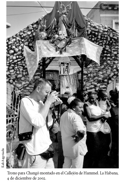 Sin embargo, el interés económico no es el único motivo de tal desenvolvimiento religioso. El estatuto de los creyentes ha evolucionado de manera muy positiva desde la apertura política de 1991 (Argyriadis, 2005a; véase también Cuarto congreso..., 1992). Los llamados cultos afrocubanos en la actualidad son considerados como factores valorados de la identidad cultural cubana. Además, la opinión común en la isla admite la supremacía de la santería cubana sobre sus religiones hermanas de África y América Latina, al considerar a Cuba como la cuna de la verdadera tradición yoruba, la más preservada ("el extracto puro"), y de la energía sagrada llamada aché.12 Por lo tanto, numerosos religiosos asientan hoy en día su legitimidad local sobre la presencia prestigiosa de visitantes o "ahijados" extranjeros, quienes a su vez suelen invitarlos a sus países para dar "conferencias" o como garantes de la eficacia y autenticidad tradicional de sus ceremonias.