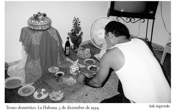 Se podrían dar otros ejemplos para ilustrar la atemporalidad de la acusación de comercialización (veáse entre otros Cabrera, 1993 [1954]: 117; Díaz Fabelo, 1960: 43-44), pero no cabe hacerlo en este espacio. Hay que destacar que desde el punto de vista de su difusión, estas prácticas religiosas incluyeron desde un principio lógicas de mercado, con altas y bajas de precios según el cliente y el costo de la vida. A la vez, gracias a la valorización artística y la utilización de las técnicas modernas de comunicación, se les abrió un espacio más amplio. Es importante subrayar que según los contextos, el pago en especie pudo constituir una forma significativa de retribución. Sin tener que evocar tiempos remotos, hace unos diez años, y todavía en la actualidad, la cuestión del tipo y número de animales destinados al sacrificio es vivamente debatida: en efecto, salvo en algunos casos,18 parte de la carne de estos animales se consume ritualmente,19 y la otra se divide entre el instigador de la ceremonia, sus padrinos y/o el sacrificador. Los santos (u orichas) y los muertos, a veces exigentes, a veces magnánimos, asombrados o caprichosos, participan en la discusión, reclaman animales de cuatro patas, mientras se les oponen explicaciones acerca del "periodo especial", de los precios del mercado agropecuario y del valor del dólar.