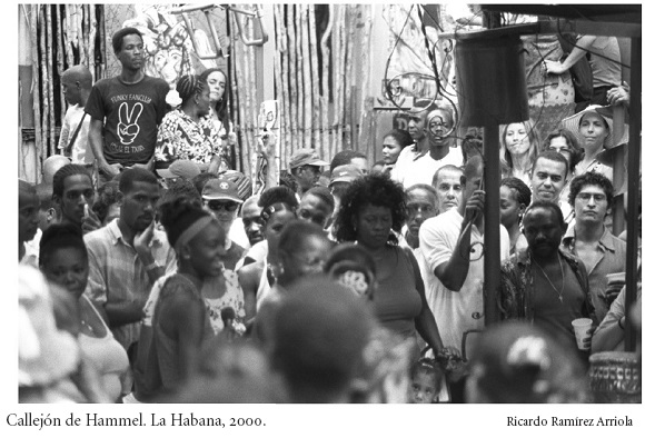 Sea a propósito o no, los lugares del turismo cultural se han convertido en puntos de encuentro privilegiados entre religiosos y visitantes extranjeros,32 gracias a la mediación de los artistas o de otros personajes que describiremos más adelante. Si desde afuera las propagandas insisten sobre el carácter auténtico, espontáneo, callejero o barrial de estas manifestaciones, en realidad su gestión y organización dependen de instituciones estatales precisas (casas de cultura, talleres del plan de revitalización cultural "Cultura comunitaria", fundaciones.) encauzadas a su vez por organismos especializados en la comercialización de este tipo de producto, como la agencia Paradiso que abarca la gestión de 90% del programa anual de eventos turísticos culturales. Pero ni esto, ni el hecho de que la "tradición afrocubana" expuesta en estos lugares claves resulte de una cuidadosa puesta en escena debe impedir un análisis del dispositivo. Más allá de una oposición entre falsedad y autenticidad, es preciso observar de qué manera los diferentes actores en sus interacciones eluden la dimensión comercial de sus intercambios, negocian su posición social33 o construyen identidades: