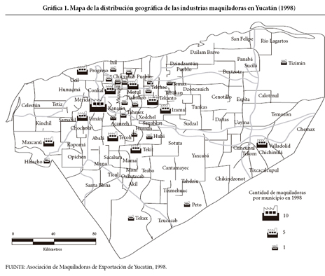 Mientras que las zonas rurales albergan exclusivamente plantas del sector textil (el cual representa 63% de las corporaciones ensambladoras del estado) (Gobierno de Yucatán, 2004), Mérida muestra cierta diversidad en términos de producción. En esta zona metropolitana funcionan plantas de diez sectores manufactureros (incluyendo joyería, sector aeroespacial, químicos, plásticos, agroindustria, equipo odontológico, equipamiento deportivo, muebles, electrónicos y textiles). Esta diferenciación sectorial se debe principalmente a que es más fácil encontrar trabajadores capacitados para las exigencias de la producción no textil en la zona urbana, donde existe un proletariado que se ha reproducido a lo largo de la historia. En contraste, la región rural ofrece una reserva de nuevos y, relativamente carentes de experiencia, trabajadores industriales que no han alcanzado (¿alguna vez lo harán?) la etapa de proletarización (Otero, 2004, se refiere a estos trabajadores rurales de México con el término de semiproletariado). En parte de esta zona rural se ubican algunas poblaciones medianas que funcionan como centros regionales. Entre éstas, las dos más importantes en términos de producción maquiladora son Motul (con 4 033 trabajadores en 2004) y Valladolid (con 3 399 trabajadores en el mismo año). Otros centros menores para la producción maquiladora son Tixcocob (1 476 trabajadores), Izamal (1 176 trabajadores) y Tizimin (1 040 trabajadores) (Gobierno de Yucatán, 2004).