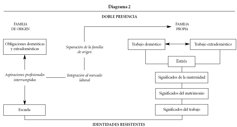 En la actualidad, la presencia significativa de la mujer en la vida económica hace indispensable indagar sobre las consecuencias de este hecho desde la experiencia de las propias mujeres. Lo importante, sin embargo, es lo que esta ambivalencia nos revela al final. Por un lado, observamos que los modelos de "la buena madre" y "la trabajadora de calidad" están perdiendo valor ante los ojos de las propias mujeres que descubren el alto costo que significa tratar de conciliar lo inconciliable en las situaciones desventajosas en que enfrentan la doble presencia. Mientras tanto, encontramos redes familiares de tipo patriarcal que conducen a las mujeres al trabajo y deciden sus destinos laborales de acuerdo con los mitos reproductores. Al mismo tiempo, vemos mujeres que luchan a contracorriente por definir sus propios destinos, por crear sus propias redes de solidaridad intergeneracionales, gracias a las cuales enfrentan las exigencias de la doble presencia y, en la marcha, le dan un nuevo sentido a sus papeles de madres/esposas/trabajadoras.