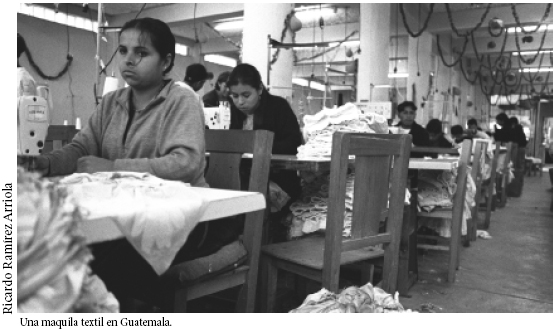 Sobre este tema, Pérez Sáinz (2001), basándose en una investigación realizada por Maribel Carrera en una comunidad guatemalteca que vive de la producción de ropa, llega a algunos resultados que ilustran muy bien los problemas que enfrentan las pequeñas empresas locales que intentan insertarse en las cadenas globales en condiciones menos desventajosas. Si bien encuentra que en el caso estudiado la subcontratación genera un importante dinamismo económico, también descubre que ha erosionado los valores ocupacionales de los productores locales de ropa. En un estudio anterior (1996), en el que analizaba las condiciones de trabajo prevalecientes en la industria maquiladora en tres países centroamericanos (Costa Rica, Guatemala y Honduras), asociaba la precariedad laboral introducida por este tipo de empresas con las dificultades para la constitución de actores, especialmente en el caso de las mujeres. La crisis de los sindicatos junto con la resistencia patronal para reconocer su existencia, a pesar y por sobre los acuerdos internacionales y las legislaciones nacionales, ha dado lugar a sujetos laborales frágiles que perciben el trabajo "más bien como un medio de subsistencia antes que un fin en sí mismo que pudiera estructurar un proyecto biográfico". En este contexto, las identidades laborales se desplazarían del espacio de la propia empresa al mundo extralaboral, principalmente por la incidencia que tienen los estilos de consumo entre la mano de obra joven y los roles domésticos de las mujeres.