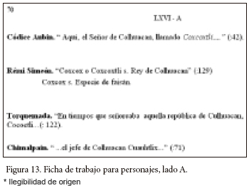 21 Particularmente con el apoyo del Diccionario de la lengua náhuatl o mexicana de Rémi Simeón (1988) y el Vocabulario en lengua castellana y mexicana de Alonso de Molina (1977).