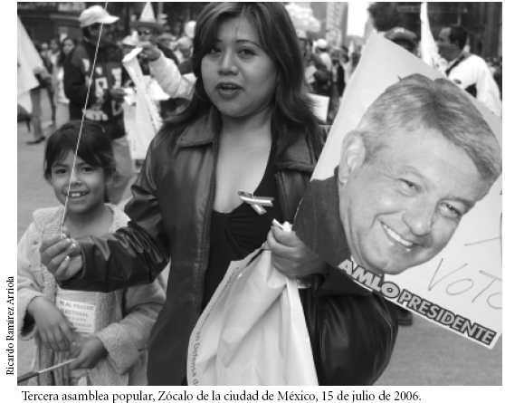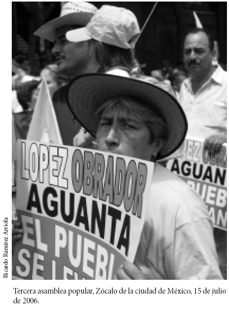 Elmovimiento poselectoral contra el fraude y por la democracia no ha concluido. Está presente en cientos de actividades, declaraciones y trabajo político de las comisiones. Sin embargo, sea por la falta de una articulación mayor entre movimiento, organizaciones y dirigencia, o sea por situaciones externas en la estructura de oportunidades y retos políticos, lo cierto es que la formación de la CND ese 16 de septiembre significó, almismo tiempo, la culminación de un ciclo en la historia del movimiento. Después de eso, la participación decayó notablemente. El 20 de noviembre se realizó la ceremonia de toma de posesión de López Obrador como presidente legítimo con una participación no mayor a 350 mil personas. La imponente movilización de dos millones de ciudadanos quedó atrás. El 1° de diciembre, los legisladores del FAP intervinieron para evitar la toma de posesión del presidente electo Felipe Calderón en la Cámara de Diputados, esta vez sin éxito. La mayoría de los ciudadanos vio la consumación del acto a través de una televisión controlada totalmente por el Ejecutivo Federal, en medio de la impotencia y la frustración. Las acciones organizadas de resistencia y boicot generalizado a productos de grandes empresas que violaron la ley al apoyar financieramente la campaña de Calderón han sido simbólicamente espectaculares, pero han encontrado poca difusión en los medios de comunicación, totalmente supeditados al nuevo grupo en el poder.
