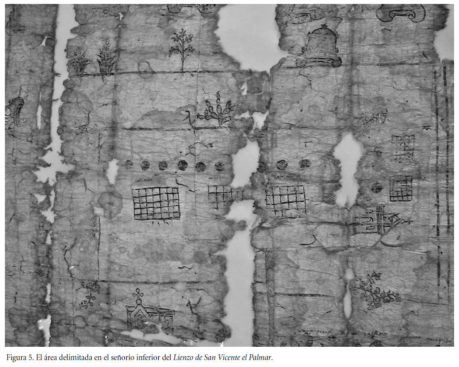 8 En el caso del Lienzo de San Vicente el Palmar existe otro elemento de vigencia actual, ya que la población dio a conocer el documento hace poco con la esperanza de que éste podría ser de alguna utilidad en su añejo conflicto con una comunidad vecina. Por lo mismo, la identificación de la geografía representada era de importancia para los actuales habitantes.