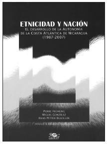 El libro Etnicidad y nación. El desarrollo de la autonomía de la Costa Atlántica de Nicaragua (19872007), escrito a tres manos por Pierre Frühling, Miguel González y Hans Setter Buvollen, es el primer estudio global realizado sobre el proceso autonómico en Nicaragua desde la incorporación del régimen de autonomía en la Constitución de 1987 hasta el cierre de la redacción del libro en 2007. Este extenso estudio puede considerarse como una prolongación del libro de uno de los autores, Miguel González, Gobiernos pluriétnicos: la constitución de regiones autónomas en Nicaragua, que abarca la historia política regionalnacional y del sistema autonómico en Nicaragua hasta 1994. El libro que nos ocupa se enfoca especialmente en el análisis de los avances, problemas y retos del régimen de autonomía en sus veinte años de existencia. Se trata, sin duda, de un balance pormenorizado e imprescindible para estudios posteriores, y adquiere mayor relevancia si se advierte que Nicaragua es el primer país de América Latina en el que se establece un régimen de autonomía, y que la diversidad de cuestiones planteadas en esta singular y extraordinaria experiencia merece ser objeto de especial atención, no sólo para estudios comparativos sobre el tema, sino también para la construcción de futuras autonomías en la región. Desde luego, no se trata de conocer para calcar, sino para aventajar.