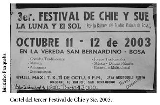 En este contexto, el festival muisca ofrece una oportunidad de encuentro físico entre quienes se comunican en el mundo virtual. Asisten agrupaciones para compartir sus respectivos proyectos y fortalecer los lazos virtuales con un encuentro físico. Por otro lado, aunque el identificarse muisca por llevar un determinado apellido pudiera ser explicado a la luz de la teoría de Hobsbawm y Ranger, existen otros referentes de identidad en las vidas cotidianas que no son necesariamente repeticiones mecánicas ni mucho menos ficticias. Acudir a los apellidos ha sido tal vez una estrategia de identificación con la pertenencia a familias ancestralmente muiscas, pero la identidad muisca no se reduce a ese hecho. Sin embargo, en no pocas instancias administrativas, religiosas, educativas y de la vida cotidiana la pertenencia al "Cabildo indígena Muisca de Bosa"6 depende del porte de estos apellidos.