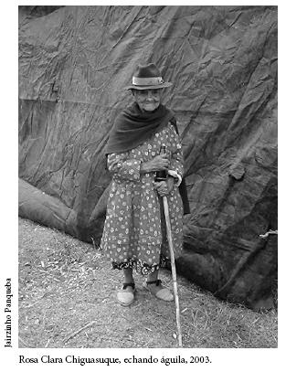 19 En extrañas circunstancias, el hermano Mamanché apareció muerto por un balazo en la cabeza en uno de los cerros a donde acostumbraba llegar. Su muerte, a principios de julio de 2007, significó dar paso a la juventud que él mismo había formado en los alrededores de la laguna sagrada de Guatavita, en la Sabana de Bogotá. Chogue sua saasbisha. Ancestro: eso eres ahora.