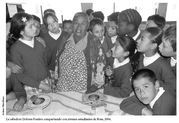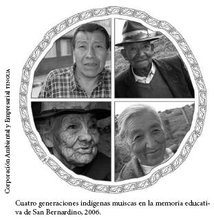 Cuando comenté en la institución que yo me identificaba como indígena u'wa,11 don Héctor y algunas colegas me hicieron saber que unas personas de la comunidad educativa se reunían los domingos en un espacio del colegio porque pertenecían al Cabildo indígena Muisca de Bosa. Asistí a una de esas reuniones, cuyo liderazgo era llevado por dos hombres jóvenes, a quienes ubiqué por su apariencia física entre los 24 y 28 años de edad. Los asistentes eran personas ancianas, señoras, señores, algunos jóvenes, niñas y niños que jugaban en los patios del colegio mientras sus papás, mamás, tías, tíos, abuelas y abuelos atendían la reunión. Ese día conocí a una estudiante que estaba terminando su carrera como historiadora en la Universidad Nacional de Colombia. Ella intervino en la reunión para anunciar que realizaría visitas a las casas de familias muiscas para hacer entrevistas, y adicionaba en su discurso frases sobre la importancia de la organización comunitaria y el trabajo de "recuperación colectiva de la historia" (proceso que ella lideraba en estos territorios desde pocos meses atrás).
