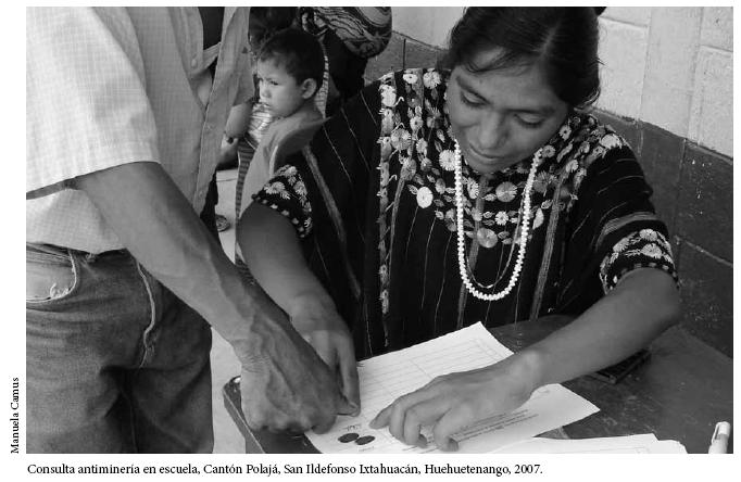 Consulta antiminería en escuela, Cantón Polajá, San Ildefonso Ixtahuacán, Huehuetenango, 2007.