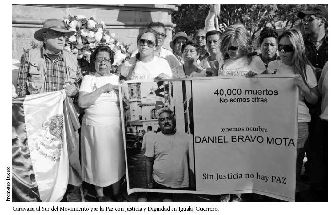Caravana al Sur del Movimiento por la Paz con Justicia y Dignidad en Iguala, Guerrero.