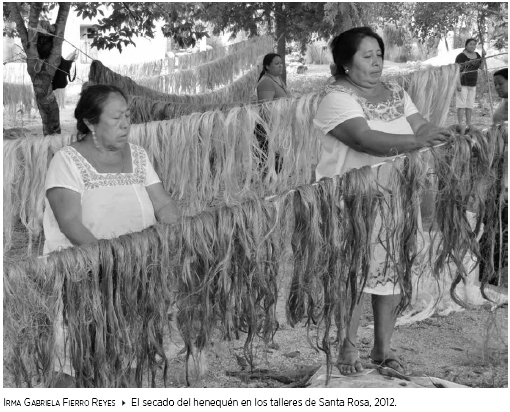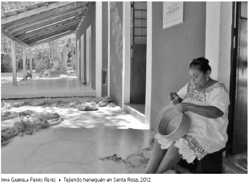 Antes de la caída de la agroindustria del henequén, la gran mayoría de las mujeres de Temozón y Santa Rosa no trabajaba de manera asalariada. Con el despido masivo del sector masculino, muchas de estas mujeres se vieron obligadas a asumir las riendas económicas de sus hogares; sin embargo, en la zona henequenera no existían oportunidades de empleo para la población, lo que causó una migración masiva sobre todo pendular a ciudades como Mérida (Baños, 1993).7 Con la llegada de Grupo Plan a la zona, la restauración de las haciendas y la creación de la FHMM, empezaron a construirse talleres artesanales en Temozón y Santa Rosa. Los primeros facilitadores comunitarios invitaron a todas las mujeres sin importar su edad, estado civil o escolaridad a participar en los proyectos productivos, con lo que se abrieron fuentes de empleo para el sector femenino y la posibilidad de trabajar sin salir de sus localidades se convirtió en una realidad para ellas.