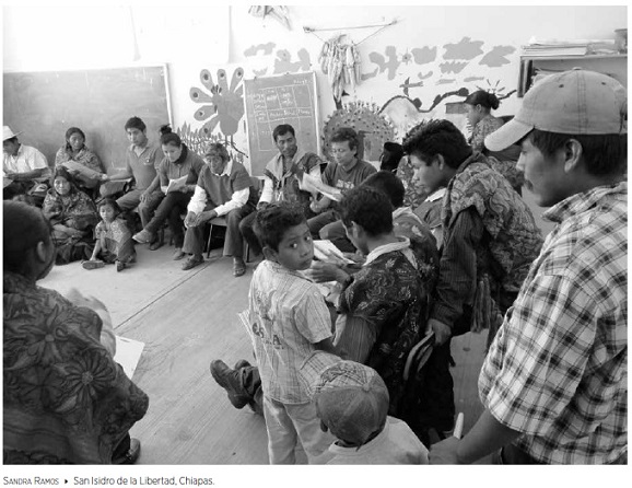 El artículo de María Elena Martínez Torres, Rubén Muñoz Martínez, Raúl Gutiérrez Narváez y Sandra Ramos Zamora ilustra el camino algo tortuoso de "cuidado" y "vigilancia" que ha llevado la comunidad San Isidro de la Libertad, del municipio de Zinacantán, para adoptar la propuesta curricular de la Unión de Maestros de la Nueva Educación para México y Educadores Independientes (UNEM/EI) que sembró por primera vez el MII en este país -con la colaboración del Centro de Investigaciones y Estudios Superiores en Antropología Social (CIESAS)- en y desde Chiapas. Esta adopción fue el resultado de múltiples tensiones y discusiones entre comuneros no zapatistas, zapatistas y afines al zapatismo que, a su vez, han producido sucesivas escisiones comunales hasta que la comunidad mencionada, autónoma del zapatismo, pero afín y producto de una última división, se decidió por el currículum de la UNEM/EI que se está implementando con el apoyo del equipo de la Rediin de Chiapas. Es la demostración de cuánto esfuerzo de concientización, explicación y experimentación debe invertirse en un proceso que convenza finalmente a los comuneros y motive su participación activa.