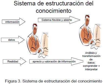 Es claro pues, que repetir la estructura de información, citar las palabras y establecer los referentes sin la mediación adecuada o sin el proceso de conocimiento explícito, cae en la duplicación de un lenguaje, posiblemente adecuado en un conjunto de ideas, pero sin sentido propio para la estructura de conocimiento. Podemos ilustrar este juego de estructuras al comparar las Figuras 3 y 4.