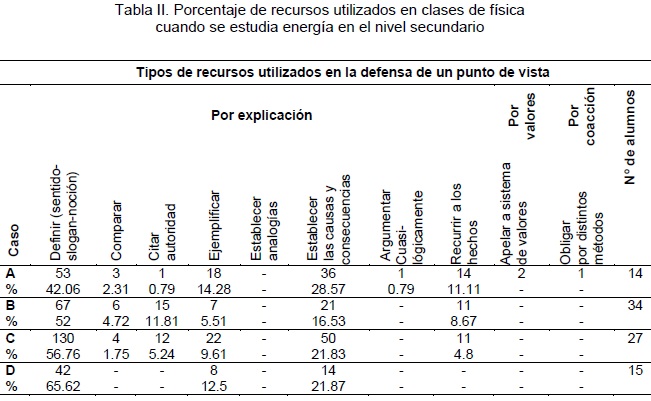 Como parte de los intercambios comunicativos, en este artículo se identifican y describen los recursos explicativos utilizados en las clases de Física de los casos objeto de estudio.