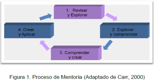 En segundo lugar, dentro del proceso de mentorización podemos hacer referencia a una serie de etapas que se concretan en cuatro y se plasman en un proceso cíclico (ver Figura 1).