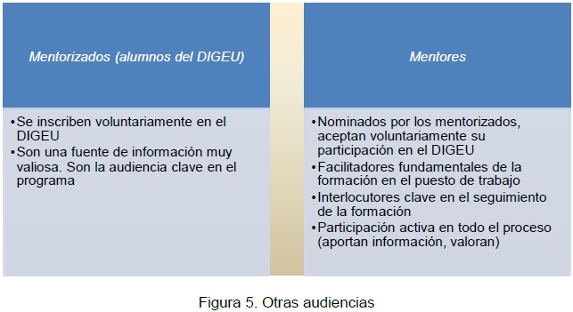 En síntesis, la información presentada respecto a las audiencias implicadas en la evaluación del programa de mentorización se puede observar en la Tabla III.