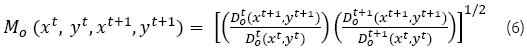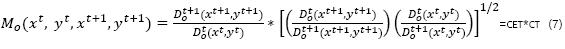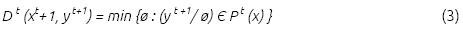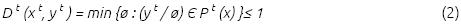 Esta función mide el máximo cambio proporcional en los productos necesario para que (xt+1, yt+1) sea factible con la tecnología del período t. En este caso, el valor de la función distancia puede exceder la unidad, debido a que la entidad evaluada no es posible con la tecnología de otro período.