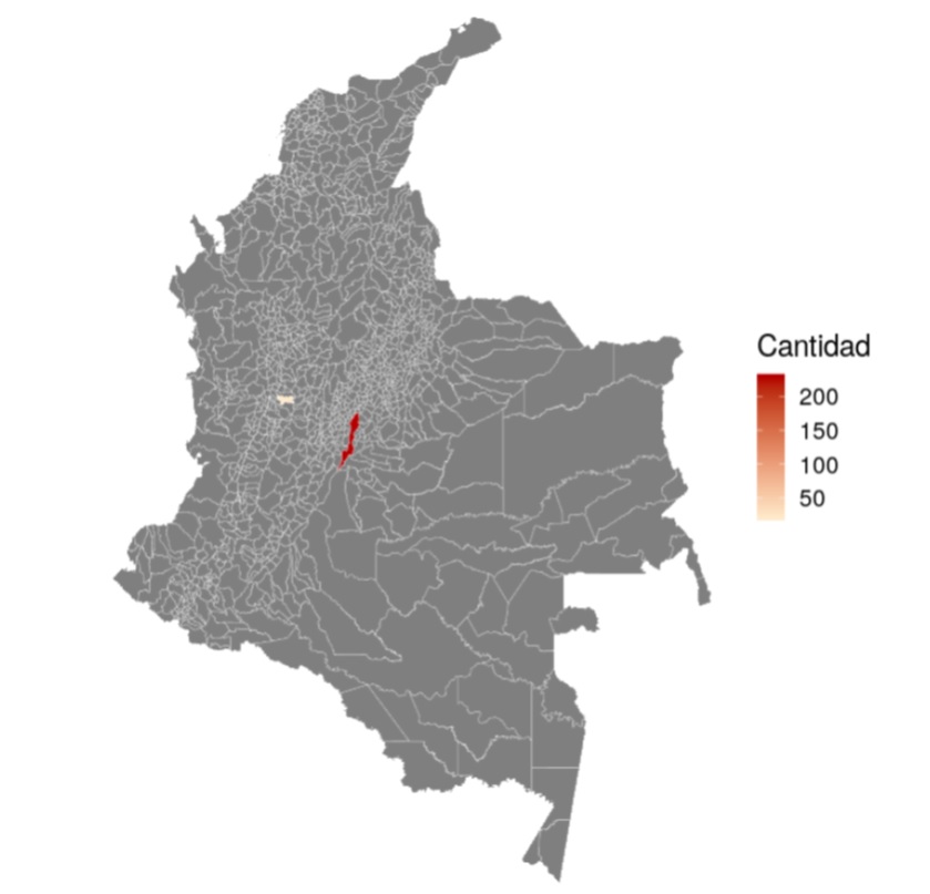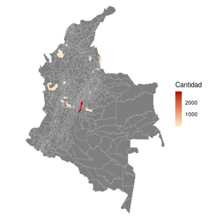 Figura 8 Cantidad de estudiantes por municipio, distancia tradicional