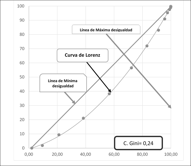 Figura 2 Representación gráfica de la curva de Lorenz en el grupo de CV