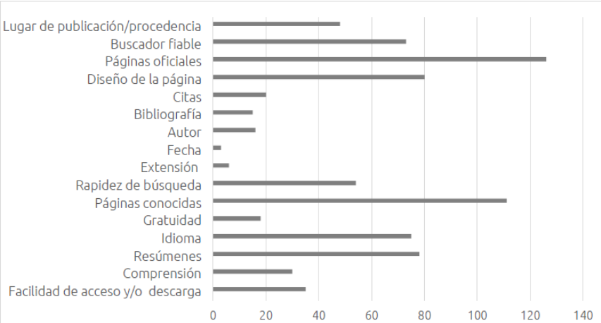 Sin embargo, en su desempeño real se imponen otros criterios, como la gratuidad, el acceso rápido y fácil o la extensión y el idioma, que nada tienen que ver con los de calidad. En cuanto a la organización de la información, priorizando lo más importante (con datos exactos y lógicos), el alumnado tiende a realizar lecturas superficiales nada significativas mediante la identificación de las palabras clave que ha empleado para acceder a la información. Respecto a las habilidades de pensamiento crítico: seleccionar datos según su imparcialidad, relevancia, pertinencia, en concordancia con la teoría manejada, proponiendo estrategias, evaluando ideas e infiriendo causas para formular conclusiones basadas en las evidencias; el alumnado dice que para seleccionar la información emplea criterios como la fiabilidad, objetividad e idoneidad para responder la pregunta, sin embargo, en muchas ocasiones los textos seleccionados para responder a la pregunta contienen opiniones en lugar de hechos fundamentados, relevantes y pertinentes. Además, se evidencian dificultades para argumentar sobre los criterios empleados para rechazar ciertos textos.