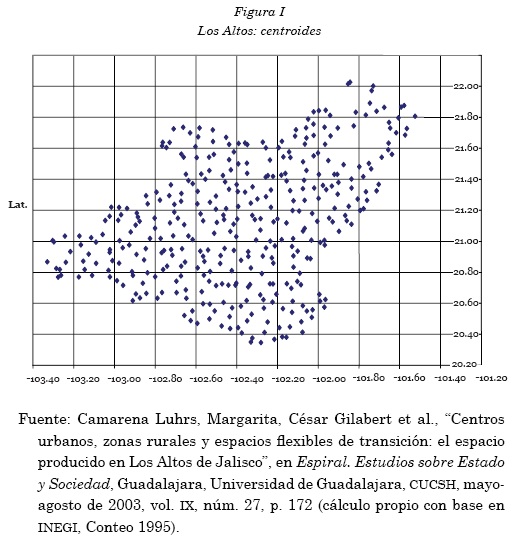20. Cuyos primeros resultados publicamos con el título: "Centros urbanos, zonas rurales y espacios flexibles de transición: el espacio producido en Los Altos de Jalisco", en Espiral. Estudios sobre Estado y Sociedad, Guadalajara, Universidad de Guadalajara, CUCSH, mayo-agosto de 2003, vol. IX, núm. 27, pp. 155-178.