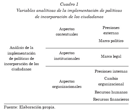 Para poder abordar y estudiar la cuestión de la implementación de la política de incorporación de los jóvenes en la política ambiental en América Latina, se han definido variables analíticas (cuadro 1) con base en algunas propuestas teóricas, en particular la propuesta de García (2004). En este artículo se presentarán de manera general algunas de estas variables que sirven para comprender en diferentes aspectos el contexto donde se originan en América Latina proyectos de participación como el GEO Juvenil.