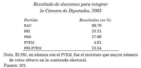Un resultado similar se dio en el caso de la elección para integrar la Cámara de Diputados de México en 2003, ya que el PAN fue el partido que más financiamiento tuvo de origen público en la elección, lo cual no correspondió proporcionalmente al número de votos que obtuvo. Es decir, el partido o coalición de partidos que más presupuesto recibió por concepto de campañas electorales no fue el que más votos tuvo en los comicios, como se observa en los siguientes cuadros.22