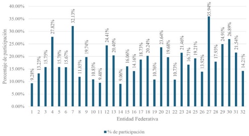 Gráfico 1 Porcentaje de participación en la revocación del mandato por entidad federativa