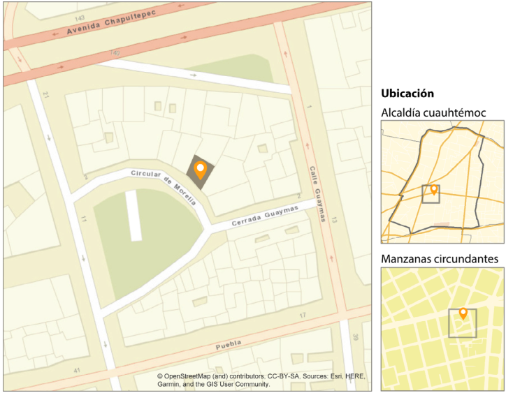 Desde su fundación, la DFS estuvo ubicada frente a la Plaza de la República, al centro de la Ciudad de México. Para 1972, la DFS comenzó a buscar una nueva sede, la cual sería un edificio ubicado en Circular de Morelia 8, en la colonia Roma, en la Ciudad de México. El edificio, que hasta entonces fungía como oficinas privadas, contaba con cinco pisos y su ubicación resultaba estratégica al localizarse en una zona cercana a la SG -ubicada en Abraham González- y a la Policía de Tránsito del Departamento del Distrito Federal -localizada en la zona sur del Centro Histórico, lugar donde también se realizaron graves violaciones a los derechos humanos- (véase Mapa 1). El arribo de la DFS representó un cambio en la dimensión relativa de este espacio (Harvey, 2017) al generar modificaciones en las prácticas socioespaciales en esta parte de la colonia. Así, los lugares de estacionamiento vehicular destinados a los agentes de la DFS estarían localizados en calles aledañas -Guaymas y Cerrada de Guaymas- con el objetivo de que el propio aparcamiento del edificio siempre estuviera libre para la entrada y salida de autos que llevaban de forma clandestina a personas detenidas (Informante 1 de la DGEADH, entrevista personal, 14 de junio de 2023).