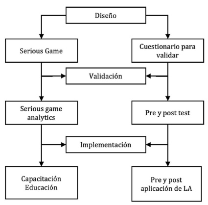 Por su parte, el learning analytics o analítica del aprendizaje busca desarrollar y utilizar métodos de medición, recopilación, análisis y comunicación de datos, orientados a la comprensión y optimización del proceso de enseñanza-aprendizaje dentro de su entorno (Niemelä et al., 2020). Específicamente, en game learning analytics los datos obtenidos de la interacción del jugador con el juego serio pueden ser utilizados para evaluar a los estudiantes, predecir resultados de aprendizaje, validar los serious game y encontrar posibles mejoras en el diseño del juego (Alonso-Fernández et al., 2019).