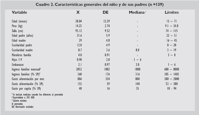Como variables independientes se exploraron las siguientes: sexo del preescolar en la guardería, peso/edad, talla/edad y peso/talla, número de hijos vivos, estado civil, miembros en la familia, escolaridad de los padres, ocupación de los padres, tipo de familia, fármaco dependencia en el padre y/o la madre y estado de salud de los padres cuyo análisis e interpretación no son el propósito de esta comunicación.
