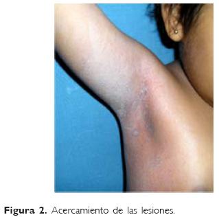 1. Eccematosa. Lesiones iniciales en axila y cara lateral del tórax.