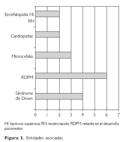 Con relación a la enfermedad asociada, está descrito que sufren mayor predisposición a esta entidad aquellos pacientes con síndrome de Down. Andrew y col.,25 en un estudio de 181 pacientes diagnosticados con enfermedad de moyamoya, refieren que 16 (8.8%) tenían síndrome de Down. En nuestra casuística se encontró que cuatro tenían este síndrome.