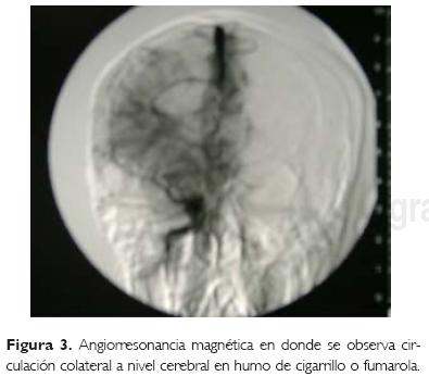 Conclusión. El diagnóstico de la enfermedad de moyamoya se realiza con angiografía o angiorresonancia magnética. El tratamiento quirúrgico es de elección.