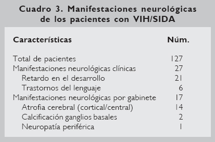 Neurological manifestations in Mexican pediatric and adolescent patients infected with HIV/AIDS. Experience in the Hospital Infantil de Mexico Federico Gomez