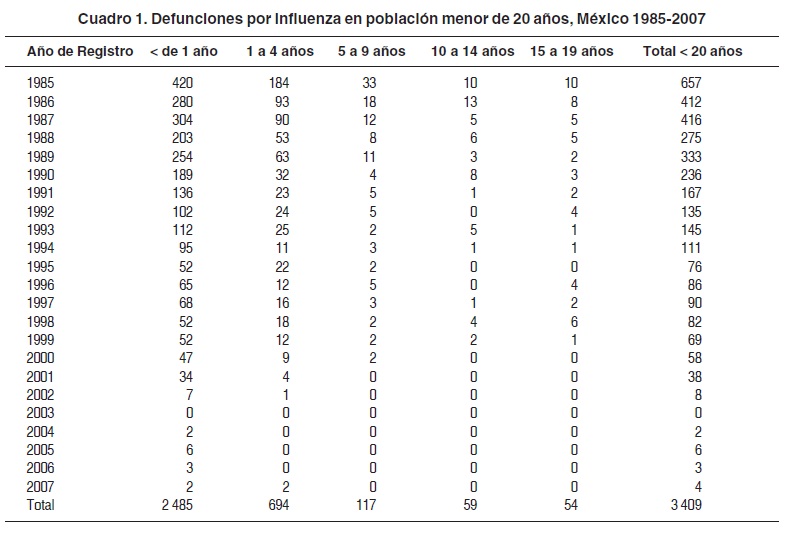 La mortalidad por influenza estacional en menores de 20 años en México, durante el periodo 1985-2007