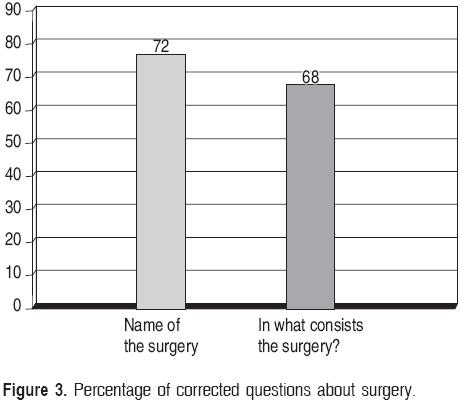 Surgery was performed on 36% of the patients. Of these patients, 72% of the participants knew the name of the procedure. When asked about the procedure that was actually carried out, the percentage of the polled relatives who gave the correct answer was reduced to 66% (Fig. 3).