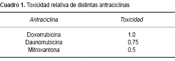 Para la estandarización y posterior comparación de la dosis acumulada de antraciclinas, se realizó la conversión según la toxicidad relativa de las mismas (Cuadro 1).5