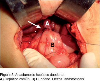 En cuanto a la medida terapéutica, generalmente se ha empleado la colecistectomía y la resección del quiste con una técnica de reconstrucción bilioentérica. La más utilizada es la anastomosis hepático-yeyunal en Y de Roux. Sin embargo, en nuestro medio, se practica como una alternativa confiable la anastomosis hepático-duodenal, que presenta buenos resultados.4,8