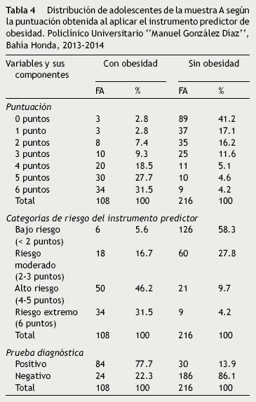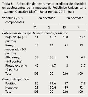 Instrumento predictor de obesidad en adolescentes en el Policlínico Universitario "Manuel González Díaz", 2013-2014