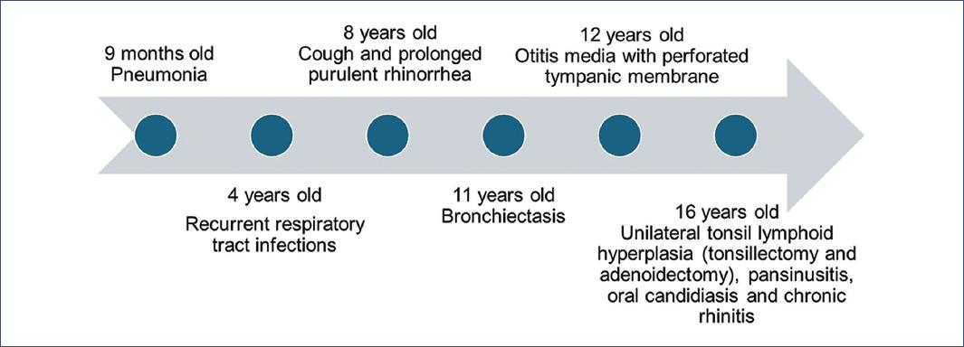 Figure 2 Clinical evolution with the most relevant findings that required medical attention throughout the patient's growth.