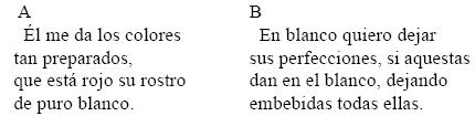 b) «dar en el blanco» metafóricamente significa, siempre en nuestro caso, la posibilidad de acertar en la conjetura de esas "perfecciones".73 Por lo tanto, al haberse eliminado tal circunstancia ("en blanco quiero dejar / sus perfecciones"), aun si se acertase con su esquicio ("si aquestas / dan en el blanco") se mantendría su virtualidad.