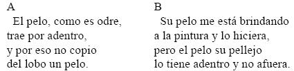 116 La isotopía del cuero es socorrida en los dos poemas, en A desde "en cueros" del v. 3 hasta los útiles de cuero como <odre> y <botas>; en B el <pellejo> y el cuero cabelludo presupuesto en el v. 11.