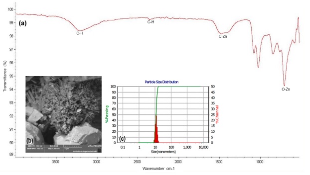 The formation of PTNPs was evidenced by the color changes in the precursor solutions and the subsequently obtained colloidal solution. The characterization of ZnO and MgO PTNPs synthesized from Moringa oleifera was carried out by scanning electron microscopy (SEM), dynamic light scattering (DLS) and FT-IR spectroscopy.